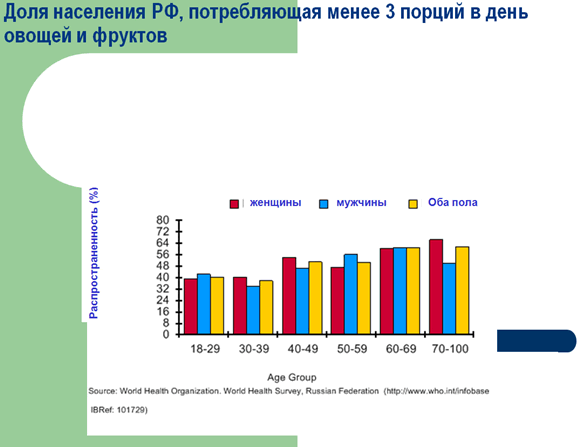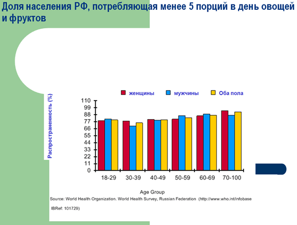 Вот данные по количеству людей в России, которые едят менее 3 порций овощей и фруктов ежедневно