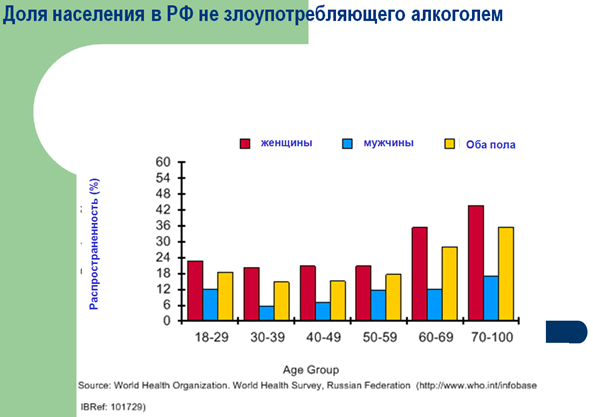 Рост красных столбиков на диаграмме показывает, что все большее число людей начинает понимать какой вред они наносят своему организму приемом алкоголя.