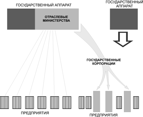 Рис.1. Преобразование отраслевых министерств в государственные корпорации.