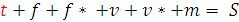 В математике такая формула называется равенством трёх слагаемых, из которых одно неизвестно – это слагаемое m. S – сумма трёх слагаемых или цена производства продукта труда, v – цена рабочей силы, c – сумма цен остальных, объединённых под одним символом, средств производства, а m – прирост или источник прибыли и налогов.