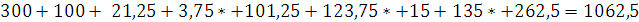 Всего переносящих свою ценность в продукт dct всех частей стоимостей сил, f и v без звёздочек, производства: 15+ 21,25+101,25= 137,5 рублей. Всего убывающих ценностей из производства всех частей сил производства f* v* со звёздочкой: 135* + 3,75* + 123,75* =262,5*Рублей. Итого S = 137,5 +123,75* = 400руб