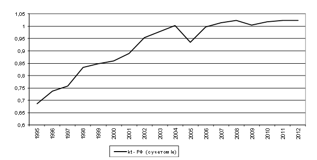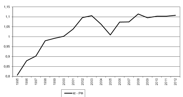 определенного с учетом международных сопоставлений, на периоде 1995-2004гг. в
