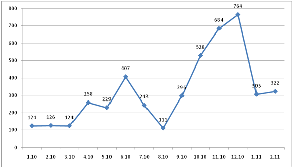 За период январь 2010 г – апрель 2011 г. в центральных печатных и интернет-СМИ было зафиксировано более 4500 публикаций, посвященных теме вступления России в ВТО. Начиная с сентября 2010 г., отмечен резкий всплеск внимания со стороны СМИ, что связано с активизацией действий со стороны России. Пик активности пришелся на декабрь, когда министр экономического развития РФ Эльвира Набиуллина и комиссар ЕС по торговле Карел де Гюхт подписали Меморандум о взаимопонимании между Россией и Евросоюзом о завершении двусторонних переговоров по вступлению России в ВТО.
