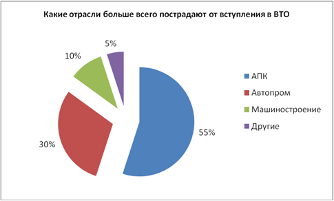В процессе исследования было выявлено, что от вступления в ВТО сильнее всего пострадают российский агропром и машиностроение, а наибольшую выгоду оно принесет добывающему сектору экономики и строительству.