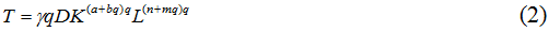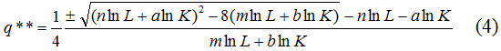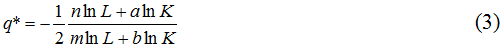 Переменные K, L и q мы предполагаем независимыми, т.к. сама функция (1) описывает формирование рабочих мест, а в силу постоянного наличия безработицы именно предложение работы является лимитирующим фактором экономического роста (а не спроса на работу). Иными словами, возможное влияние q на предложение труда не имеет решающего значения, т.к. в любом случае на макроуровне предложение рабочей силы все равно будет меньше спроса на нее.