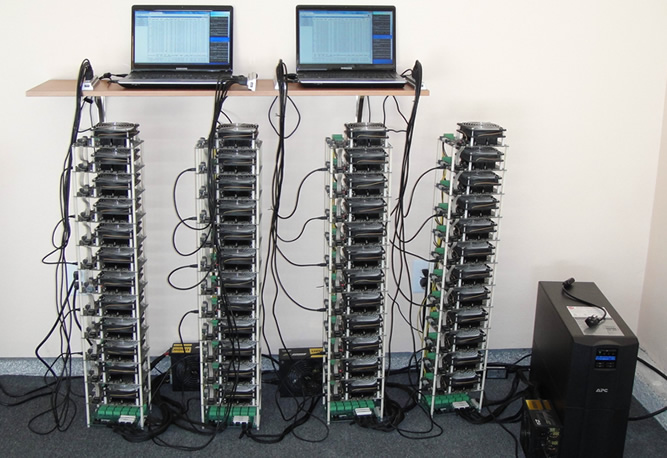 Получение новых биткоинов называется «майнингом» (от англ. mining – разработка месторождения, добыча полезных ископаемых). Поначалу «добывать биткоины» можно было, просто установив соответствующее программное обеспечение (оно находится в открытом доступе) на обычный компьютер. Теперь же объем вычислений вырос настолько, что необходимо специальное, более мощное, оборудование. В Китае, например, выпускают специальные чипы, «асики» (от англ. ASIC – application-specific integrated circuit, «интегральная схема специального назначения»), которые предназначены именно для генерации нужных блоков и получения биткоинов. Для других задач эти чипы бесполезны, зато с этой (или ей подобными) справляются в сотни раз лучше обычных компьютеров. Чипы эти продаются за те же биткоины и пользуются большой популярностью – вплоть до того, что на них даже записываются в очередь. «Станок для генерации биткоинов» представляет собой стопки таких асиков.