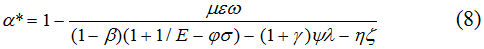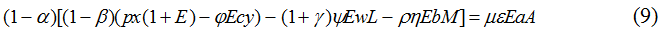 В дальнейшем все эластичности будем полагать постоянными величинами. Это эквивалентно существованию следующих функциональных зависимостей: y = k1xφ; L = k2xψ; M = k3xη; A = k4xμ; D = k5xE, где k1, k2, k3, k4, k5 - константы, зависящие от начальных условий. Тогда условие (9) можно переписать в виде: