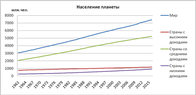 Как видно из диаграммы 1, около 5 млрд. (72%) людей на планете проживает в странах со средним уровнем доходов, в странах с высокими доходами проживает 1,1 млрд. (16%) населения, и около 800 млн. (12%) человек живет в самых бедных странах в мире, и число последних растет наиболее высокими темпами.