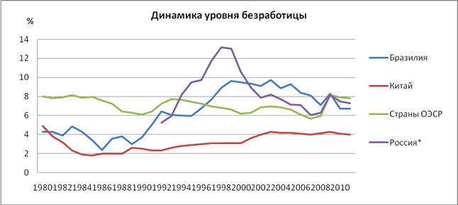 *Примечание: более ранние данные по уровню безработицы в России в базе данных Всемирного Банка отсутствуют.