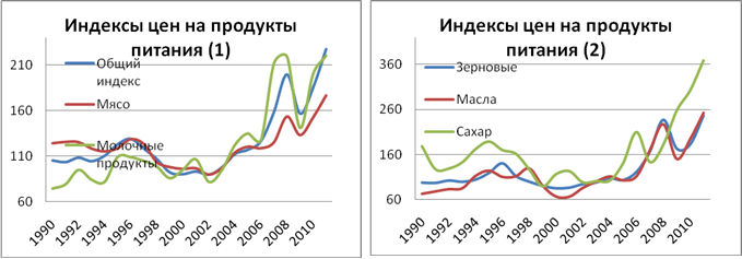 В подтверждение этого ниже представлена динамика индексов на продукты питания, демонстрирующая значительный рост цен на продовольствие в последнее десятилетие.