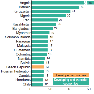 Источник: UNCTAD, расчеты Института «Центр развития» НИУ ВШЭ на основе данных IMF по платёжному балансу стран.
