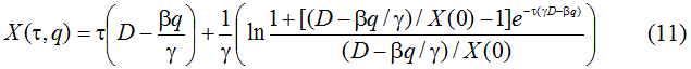 Проблема фискального регулирования инновационного рынка имеет и еще один аспект. Так, если основополагающее условие q<q* выполнено, то это еще не означает, что налоговая нагрузка определена оптимально. В этом случае возникает более тонкая задача по подбору такого уровня налогов, который давал бы максимальный выигрыш в собираемости налогов при умеренном уровне сдерживания производства. Чтобы осуществить соответствующий выбор следует воспользоваться дополнительными индикаторами. Так, для оценки кумулятивного эффекта воздействия той или иной ставки налогов на всю траекторию производства следует воспользоваться интервальным показателем объема произведенной продукции X(τ,q):