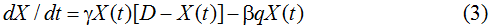 Главным и единственным параметром модели (1) является коэффициент b, который аккумулирует в себе все особенности моделируемого процесса. Так, в диффузионной модели не отражен в явной форме уровень прибыльности производства, который в частности зависит от уровня налоговой нагрузки. Не учтен в ней и факт сопротивления экономической среды экспансионистским действиям фирмы-инноватора и, в частности, со стороны ее конкурентов. Все это в агрегированной форме заложено в параметре b. Следовательно, модель (1) не позволяет изучать траектории развития фирмы в зависимости от регулирующих действий государства и, в частности, от устанавливаемого им уровня налоговой нагрузки. В связи с этим в дальнейшем наша задача будет состоять в «раскрытии» базовой модели (1) с учетом фискального фактора воспроизводственного цикла инновационного предприятия.