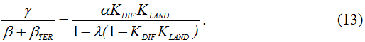 Таким образом, динамика экономического роста, отражаемая параметром γ, связана с дивергенцией неравенства доходов, отражаемой параметром β, и обусловлена начальным значением показателя дифференциации доходов KDIF и долей «богатого класса» λ.