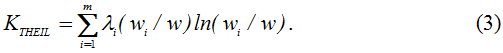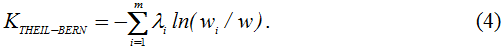 Энтропийный коэффициент Тейла хорошо улавливает изменения, происходящие в верхней части кривой распределения доходов, и с учетом введенных обозначений вычисляется по следующей формуле [1, с.63]: