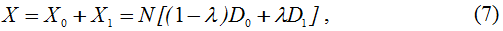 В дальнейшем для простоты и большей наглядности проводимого анализа предположим, что переменные N, D0 и λ фиксированы, то есть выступают в качестве параметров. Тогда динамика распределения производеного ВРП будет полностью определяться динамикой коэффициента дифференциации душевых доходов двух регионов. Если ввести обозначения темпов роста производства