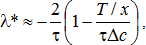 При τ>τ* система выходит из технологической ловушки, при τ<τ* – остается в ней. Так как выражение под логарифмом должно быть положительным, то отсюда легко получить еще одно критическое значение для темпа экономического роста: