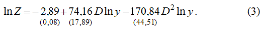В скобках под коэффициентами регрессии даны значения стандартной ошибки; N – число наблюдений; R2 – коэффициент детерминации; DW – статистика Дарбина-Уотсона. Зависимость (3) проходит все основные статистические тесты, включая t-статистики коэффициентов регрессии при уровне значимости в 99%.