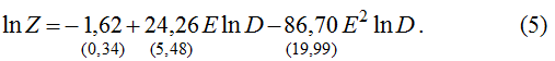 Калибровка модели (2) позволила получить следующую регрессионную зависимость: