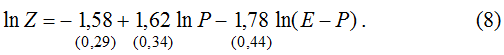 В результате практических расчетов зависимость (7) была сведена к следующей эконометрической модели: