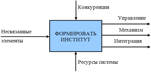 В данном случае понятие институт представляет собой синергетическую комбинацию управления и механизма в системе, поддерживающей данный процесс.
