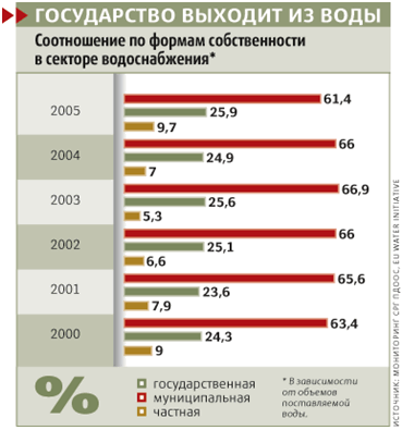 Рис.3. Данные о водоснабжении по формам собственности.