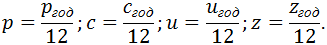 В модели вводятся следующие ставки процента: ставка по депозитам - p, кредитная ставка - c, ставка по займу - z, ставка процента по внешним инвестициям - u, ставка начислений на сбережения (ставка субсидирования) - s. Если обозначить через pгод, cгод, uгод, zгод годовые ставки, то формулы перерасчёта на месяц следующие: