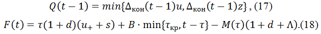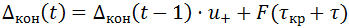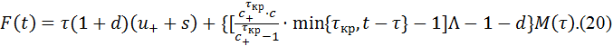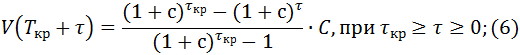 Начиная с момента времени t = τкр + τ, F(t) не меняется. Значит, при t ≥ τкр + τ остаток кредитной массы вычисляется по формуле: