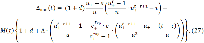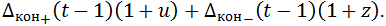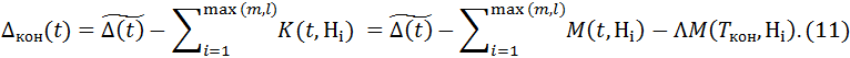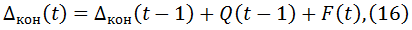 Величина остатка Δкон(t-1) задается указанной ниже формулой (11).