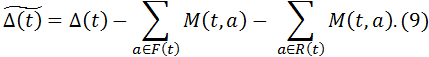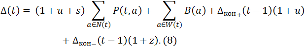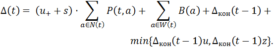 Будем обозначать через Δ(t) объём кредитной массы перед началом выдачи средств друзьям вкладчиков и агентам-нарушителям, Δкон(t) - остаток кредитной массы предыдущего периода.