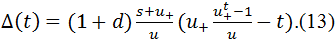 В нашем случае взнос вкладчика P(t,a) = 1, взносы друга вкладчика равны d; число агентов на стадии накопления равно сроку накопления τ, умноженному на коэффициент (1 + d); число агентов, выплачивающих кредит равно min{τкр,t-τ}. Из этих соотношений и (14) получаем