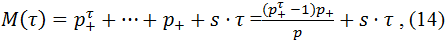 Начиная с момента времени τ, мы выдаём контрактные суммы и возвращаем средства друзьям вкладчиков. Так как нет очередей, то каждый период выдаётся ровно одна контрактная сумма. Величина ее равна M(τ)(1 + Λ) (см. (4)), где объем накоплений M(τ) равен