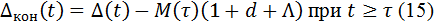 По определению, для сильной финансовой устойчивости необходимо и достаточно выполнение неравенства Δкон(t) ≥ 0 для всех t. Из формулы (13) следует, что Δкон(t) ≥ 0 при t < τ. Найдём выражение для Δкон(t) при t ≥ τ.