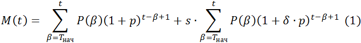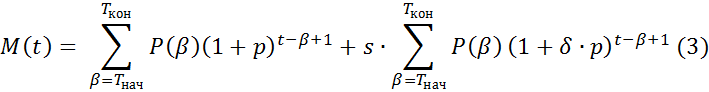 Найдём объём накопления агента a. На момент времени t ≤ Tкон накопленная сумма М(t,a) в конце периода t вычисляется по формуле: