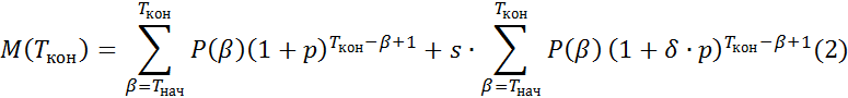 В случае t=Tкон получаем формулу для полного объёма накоплений: