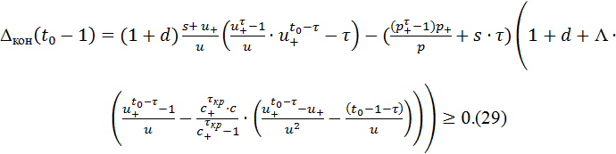 Следующее утверждение показывает, что некоторых разумных ограничениях на параметры, величина F(τкр+τ) будет неотрицательной,так что (28) выполняется.