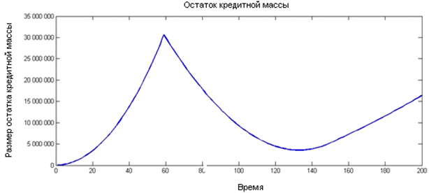 Рис. 1. Динамика остатка кредитной массы в условиях базового примера.