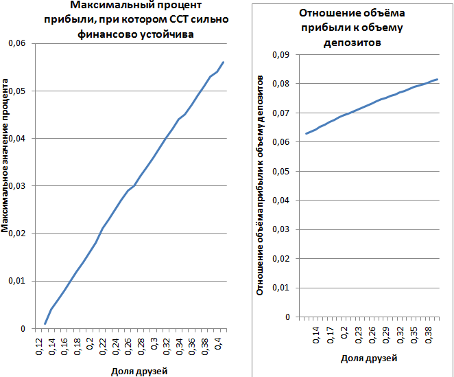 В нашей модели количество друзей вкладчиков задается как доля от общего количества вкладчиков со временем накопления не менее 5 лет, начавших накапливать в данный момент.