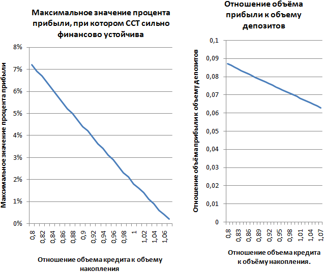 Рис. 4. Прибыль при изменении отношения объема кредита к объёму накопления.