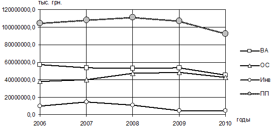 Диаграмма, отображающая динамику производственного потенциала и его составляющих в стоимостном выражении, приведена на рис.4.