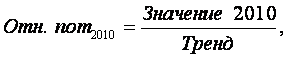 Седьмой столбец отражает в стоимостном измерении относительные потенциалы для 2010 года, рассчитанные по формуле (9).