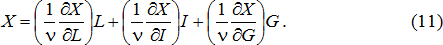 Теперь, как и ранее, предположим, что произведенный доход X связан с тремя факторами однородной производственно-институциональной функцией степени однородности ν: