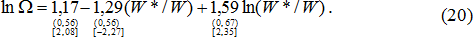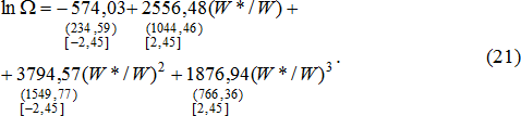 Зависимость (16) проходит все тесты, включая t-статистики коэффициентов регрессии при уровне значимости в 90%. Следовательно, модель (16) работоспособна и может использоваться в дальнейших прикладных расчетах равновесных параметров системы.