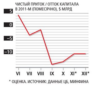 С этого момента можно подробно углубиться в сопоставление и сравнить количество выведенных за границу денег в IV квартале с суммой за первые три. В целом по окончанию года российская экономика потеряла $84,2 млрд, но на интересующий нас период пришлось аж 45% от всех потерь. Таким образом, магия цифр начинает убеждать нас в том, что есть прямая взаимосвязь между ростом политического недовольства и поведением снимающегося с якоря капитала. Потому что мы в принципе склонны поддаваться подобной игре в ассоциации. Но на самом деле видимость политической нестабильности – капля в море истинных причин оттока.