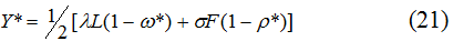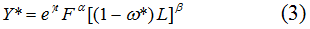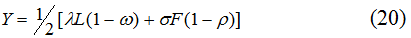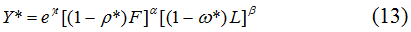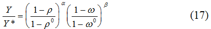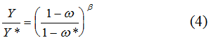 В соответствии с “трудовой” методикой фактором, используемым не полностью, является рабочая сила [1]. Соответственно, безработица представляет собой прямой вычет из потенциального ВВП страны, так как ее вовлечение в хозяйственный оборот эквивалентно образованию дополнительной порции добавленной стоимости. Исходя из того, что для любой экономики характерен “естественный” уровень безработицы ω*, потенциальный ВВП Y* расчитывается по формуле: