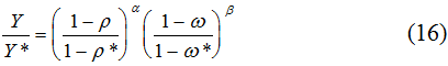 На основе соотношений (2) и (3) легко получить формулу для своего рода “коэффициента полезного действия” экономики, представляющего собой соотношение фактического и потенциального ВВП