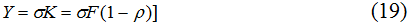 “Фондовый” подход предполагает, что производственные потери экономики связаны в основном с неэффективным использованием производственных мощностей. Соответственно, объем недозагруженного производственного оборудования может трактоваться как прямой вычет из потенциального ВВП страны, ибо устранение данного факта привело бы к увеличению выпуска конечной продукции. Полагая, что в экономике всегда имеется определенный объем резервных мощностей, характеризуемый коэффициентом “естественной” недозагрузки ρ*, потенциальный ВВП можно рассчитать по следующей формуле: