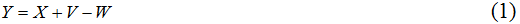 Основой предлагаемой методики выступает уравнение, связывающее объем произведенной (X) и использованной (Y) валовой добавленной стоимости в регионе-реципиенте, а также импорт (V) и экспорт (W) данного региона относительно прочих регионов страны: