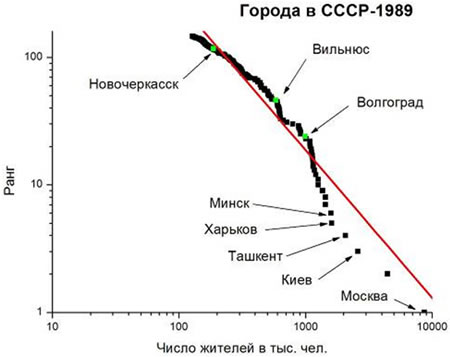 Рис.3. Ранжировка для позднего СССР (рассчитано по данным Всесоюзной переписи населения 1989 года).