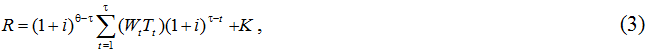 Формула для оценки полных приведенных затрат на образование R для случая заемных средств может быть записана аналогичным образом: